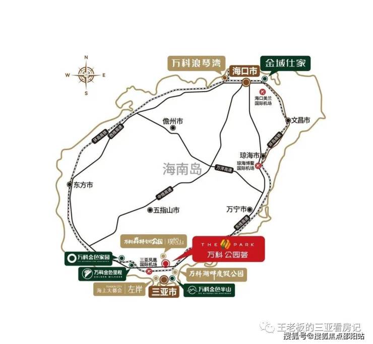 万科·公园荟占据三亚文旅横轴中点,依托环岛高速公路、学院路、迎宾路等内通外联立体交通体系,快速串联三亚湾、大东海、亚龙湾、凤凰机场等城市热点区域,实现约5km辐射范围内,一轴揽四湾。