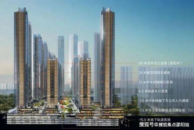 立体之城 七重立体交通创新打造地上地下七重结构立体化交通系统,不同交通系统分层互联,人行系统、城市公共道路系统、地下轨交系统快速接驳,最大程度实现人车分流,科学化疏解交通压力。