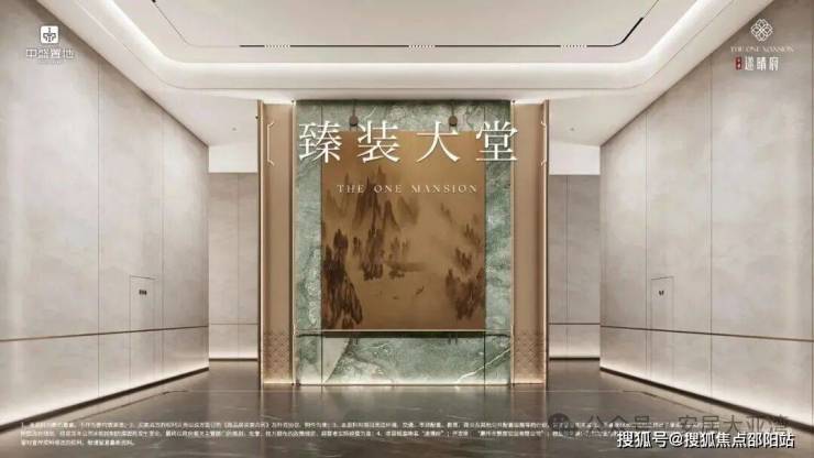 再看首层入户大堂,奢阔挑高,入目是普拉达绿奢石与诗意山水墨画的视觉碰撞。