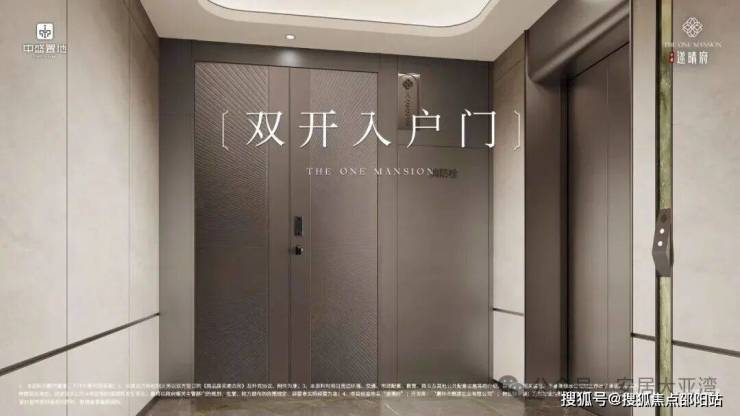 乘坐上海三菱电梯上楼,入户门是豪宅专用铸铝双开大门,门墙一体设计,造价要比普通钢质门贵5-8倍。