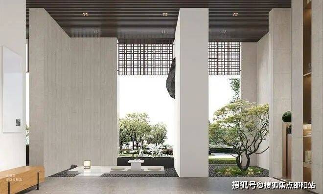 以东方雅韵为出发点,从尺度、比例、制式、材质等细节方面,将新中式建筑精髓与当代格调完美融汇于大门之中;极致挑高尺度,尽显恢弘气度。
