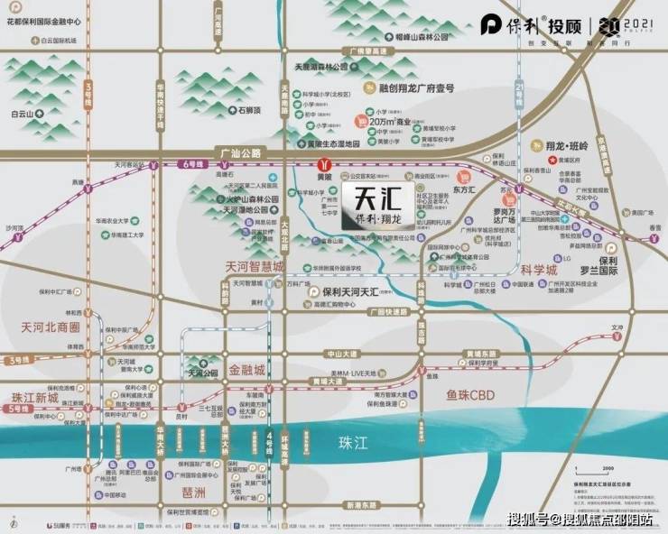 保利翔龙天汇位于“天河东门户”,左右两侧都有得天独厚的条件:左手是科创前沿阵地天河智慧城,网易、小鹏等公司都在这里;右手是广州科技城的祖师爷科学城,已经进入了收获期。