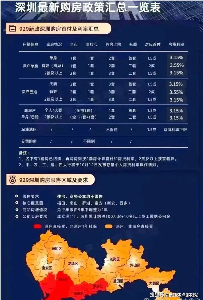 深圳最新购房政策: 1、核心区一年社保,非核心区不限购了 2、取消商品房转让限制 3、增值税5改2 4、首套15%,二套20% 5、两个未成年子女家庭,购买二套可以继续适用首套规则,即15%首付。🌟 放松限购套数:深户家庭2+1套,单身1+1套 :深户家庭可在非松绑区购买2套,另外在松绑区再买一套;单身非松绑区1套+松绑区1套。非深户家庭最多1+1套: 非深户在非松绑区购买1套房需1年社保,松绑区不限购,多孩家庭可多买一套。