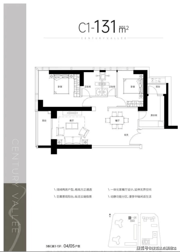 C1户型——建面约131㎡2室2厅2阳台