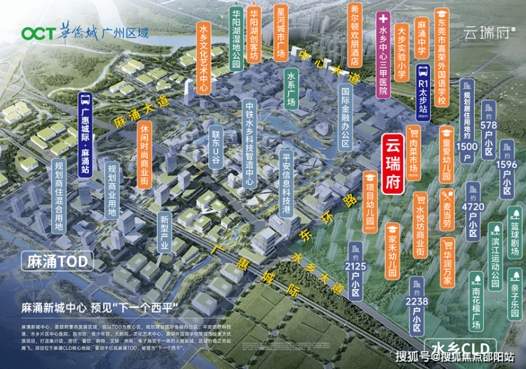 华侨城云瑞府位于位于麻涌水乡新城中心,紧邻麻涌TOD,3轨交汇,周边更是有众多核芯成熟配套。项目距离地铁R1线太步站(在建中)直线距离仅约600米,距离麻涌站约1000米;未来可3站直达西平,4站到鸿福路站。