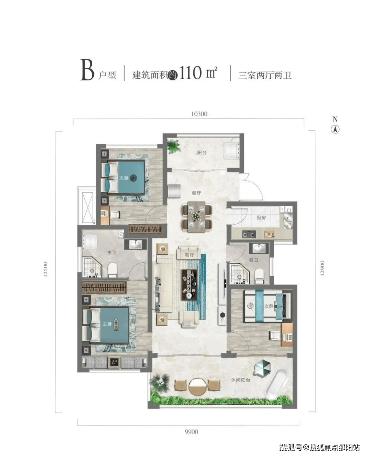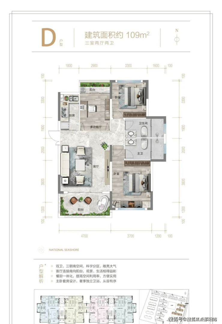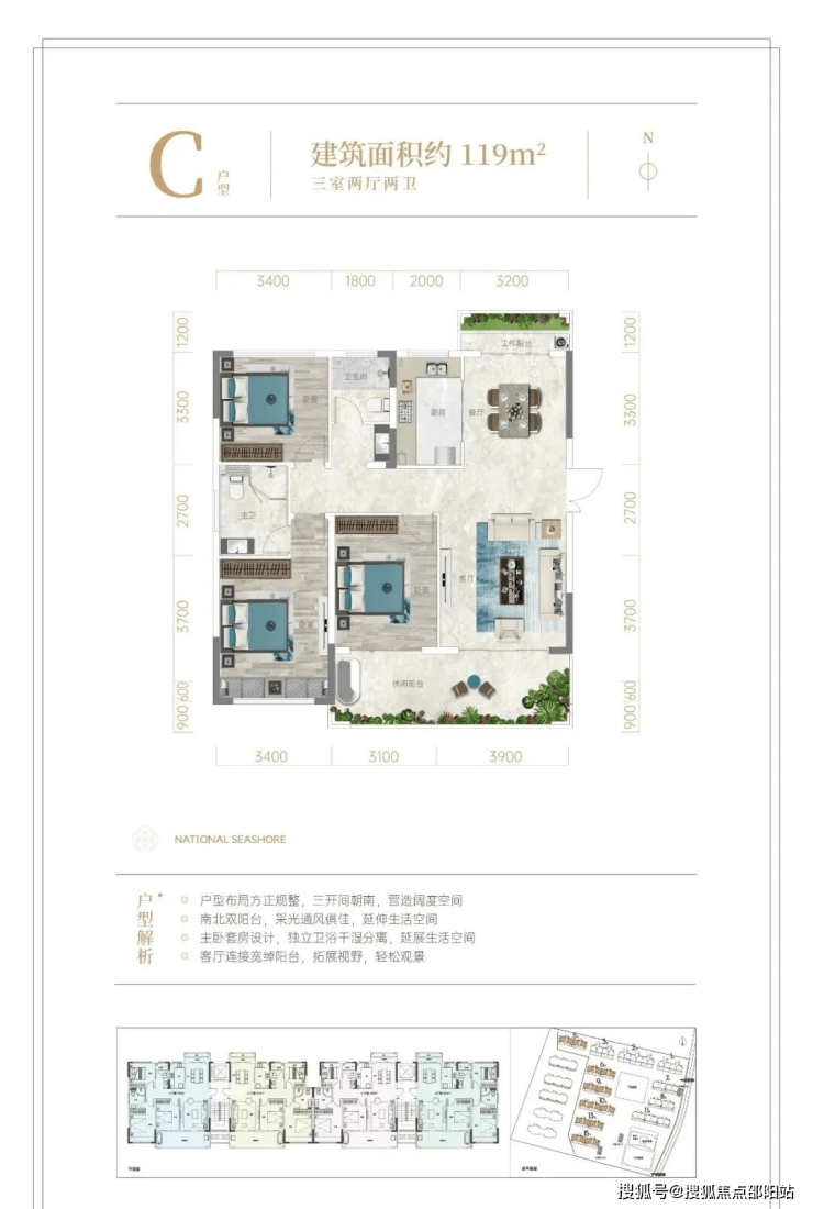 海棠壹号院全新迭代建筑面积约109-119㎡升级户型,空间布局科学合理,全明户型,南北双阳台,270°环幕视野,重新定义高端品质人居尺度。