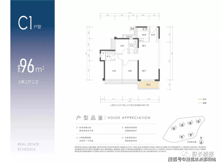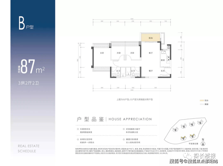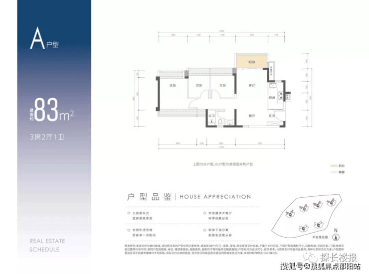 产品户型面积段约为:82㎡ 3房1卫、89㎡ 3房2卫、110㎡ 4房2卫户型,为3梯6设计,共计约1543套住宅,毛坯限价4.89万/㎡。