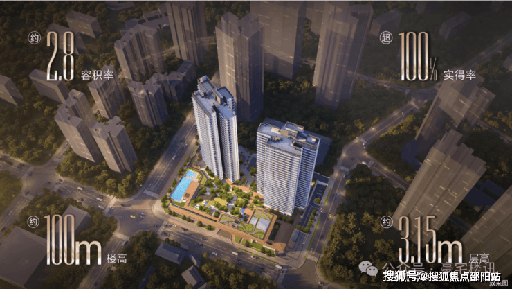 项目用地面积13657.28㎡,容积率仅2.8,建筑面积38155㎡,含住宅34555㎡,其他面积用于物业用房、托育机构和公交站,总户数290户,车位380个。共2栋30层高住宅组成
