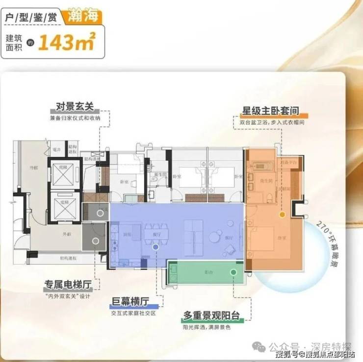 项目整体预计规划为2栋45层的高层住宅,建成后或将提供约403套,114-122-138-143㎡ 纯四房产品。4梯5户设计,8楼以上可看部分海景,户型最大使用率高达108%,最大赠送面积接近44㎡!项目与前海相邻,一路之隔就是腾讯的企鹅岛,由于前段时间项目前方改规划为教育用地,也就是在6层以上的单位,大部分户型可以穿过学校高度后眺望一线海景!妥妥的又一核心区王炸使用率新盘!