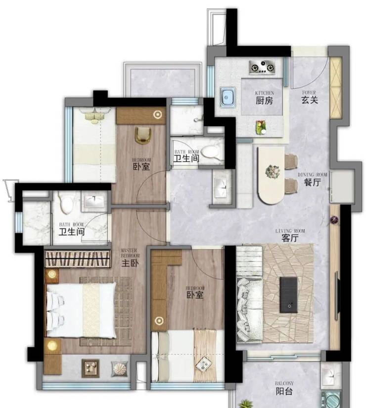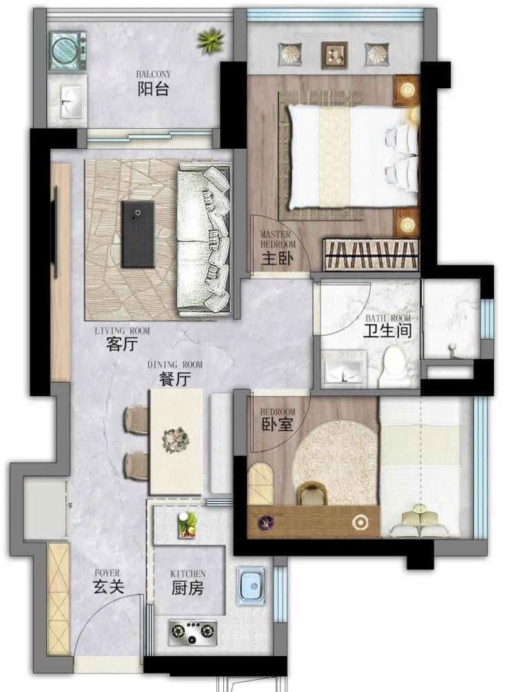 次卧尺度:可利用飘窗搭载床体,使空间更大,能够容纳独立衣柜、儿童书桌等