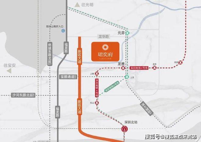 「珺奕府」原属于赤头岭一片区卓越集团的一个更新项目,地址位于龙华区大浪街道布龙路旁,项目南侧是深铁珑境,港铁天颂,北侧是羊台新村,东侧是赤岭头二村(目前都是城中村),西侧靠近锦华实验学校,4号地铁线“龙胜站”距离约500米。项目南侧一河之隔是「深铁珑境」和「港铁天颂」,北侧是「羊台新村」.
