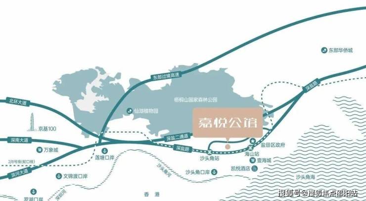 嘉悦公馆位于盐田区沙头角街道核心区域,紧邻地铁8号线沙头角站C口,步行距离约700米,5分钟可达。项目背靠梧桐山生态屏障,南眺19.5公里大鹏湾海岸线,部分高楼层户型可享"山海双景",负氧离子浓度常年高于外区60%,空气质量优良率达100%。