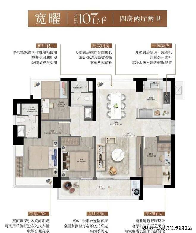 约93方横向三房约5.7米阳台直连客厅,舒适尺度达四房级别;约103-107方四房双跨宽景阳台,开阔尺度龙华稀缺。