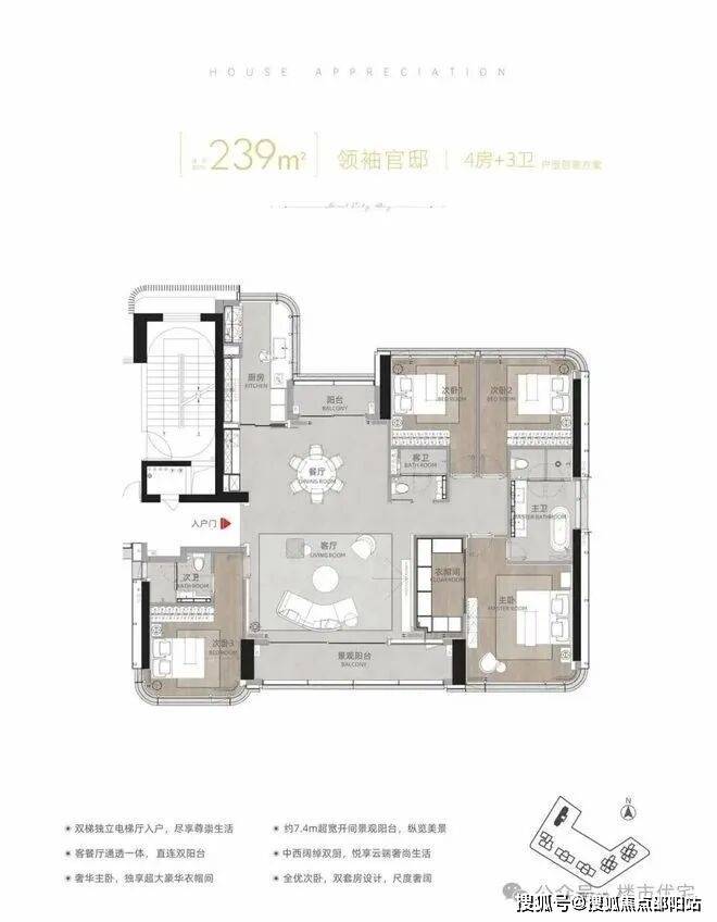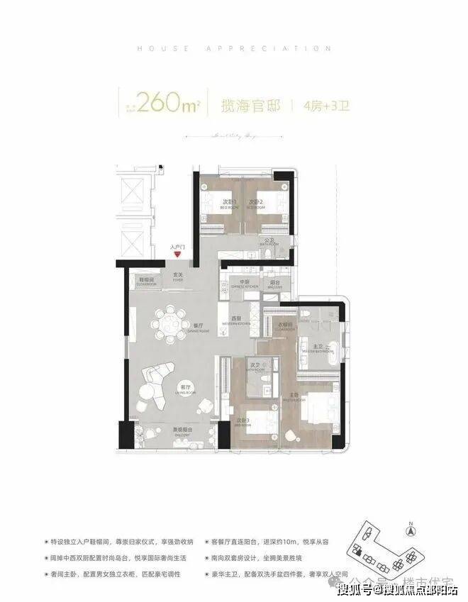 主力户型:住宅111~270㎡三至五房,公寓:165~239㎡三至四房