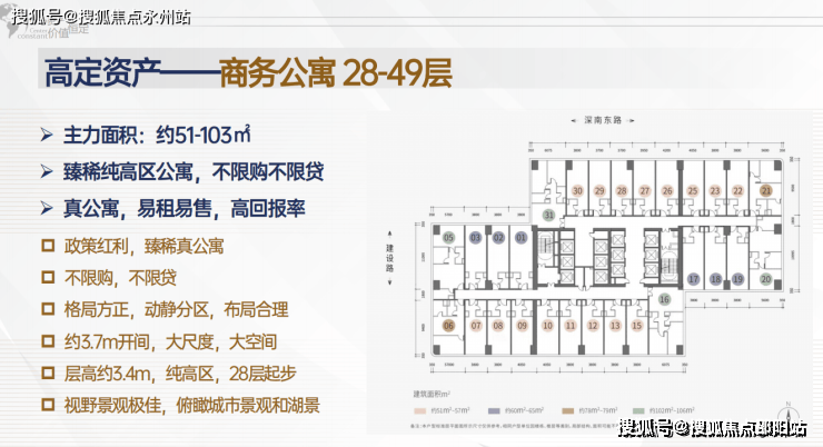 公寓:户型:79~165㎡、写字楼(商办):户型:51~94㎡