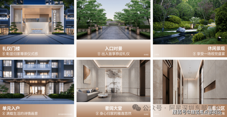 精琢六重归家礼序,奢阔礼仪门楼——入口对景——休闲景观——入户花园——奢阔大堂——品质公区,层层铺垫归家仪式感,让业主感受尊崇、互动、沉浸、归属的全新归家体验。