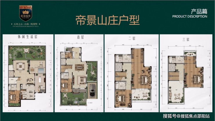 整个帝景山庄别墅产品地上三层地下一层设计,每一栋别墅都拥有全景式的观光落地窗,别墅特设三重花园景观引景入户,无论是在家里还是室外都能看见风景,令自然气息充满别墅的每一处空间。
