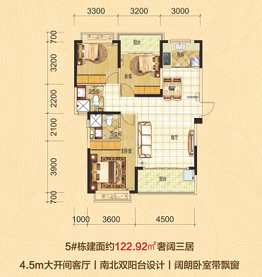 我们为您打造有声有色、懂得艺术、会思考、有情绪的居家空间。面宽4.5m大开间客厅,空间奢阔,让生活变得毫无拘束;南北双阳台设计,让阳光肆意流淌,穿堂清风通透室内空间;卧室带飘窗,推窗即可欣赏园中美景;双卫生间设置,生活使用方便舒适。为主人轻松演绎一步到位的精细生活。