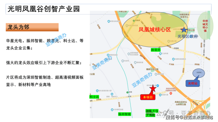 地理位置:位于深圳光明区凤凰街道,紧邻地铁 13 号线月亮路站、南光高速及茅洲河生态走廊,是光明科学城产业转化区的核心区域。
