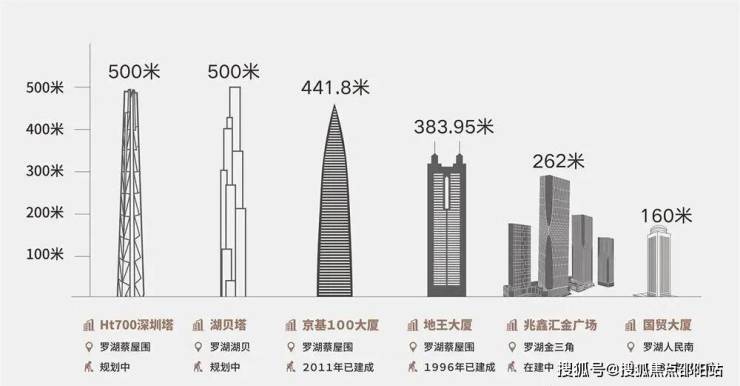 深圳最密集地标群落的城市天际线,罗湖金三角汇集四代深圳地标建筑。