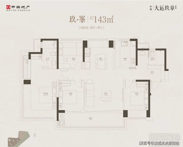 143㎡四房两卫,是市场上最畅销的南北通透的竖厅户型,保留了2开间阳台,L型长飘窗主卧保证得房率之外,这里设置了进门的独立玄关+卫生间的组合,符合新一代的健康户型概念。