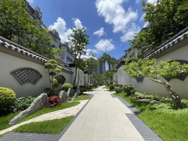 新中式园林设计,采用立体多层次种植群落,围合相对私密的空间,营造温馨的休憩居住空间、放松心灵的场所。