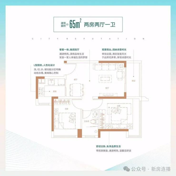 65平:2房2厅1卫,朝西/东,套内使用率74.71%(不包含赠送)