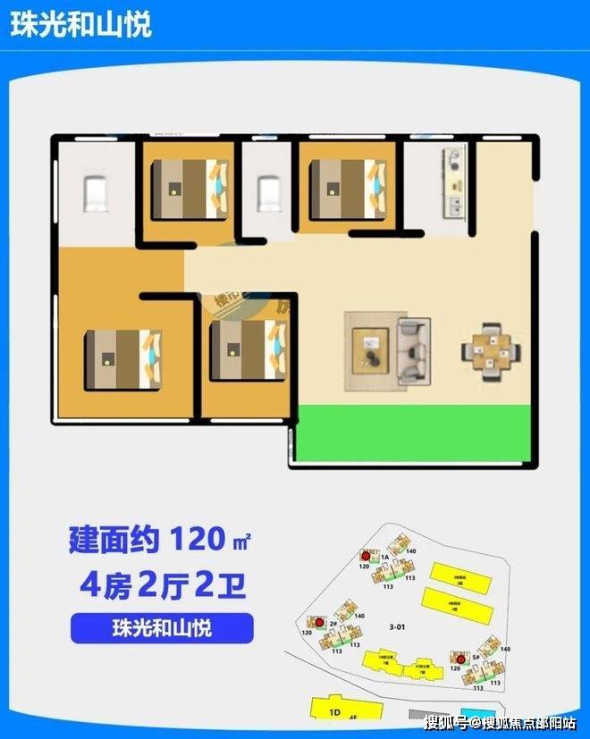 2. 120㎡4房2厅2卫:空间利用率出众,以三房面积实现四房功能,满足二孩家庭或三代同堂的居住需求,功能分区明晰,动静分离,兼具居住舒适度与空间灵活性,是改善型家庭的核心之选;