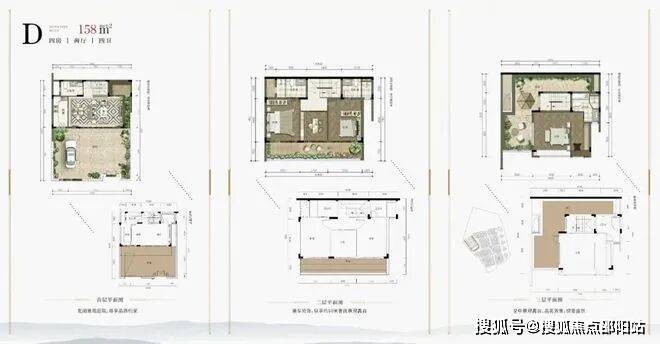 136㎡合院C户型户内庭院面积近60㎡,饱览天地的主庭院、一角风韵的下沉式庭院、情景交融的超大露台……各有情致,趣意盎然。