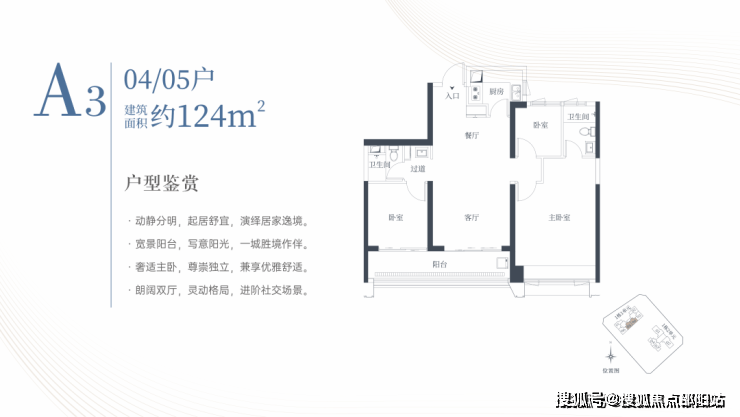 1栋一单元A3户型:面积约为124㎡