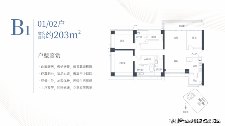 匠筑建面约124-203㎡全生命周期天幕户型,360°采光通风,270°环景主卧,山海日常推窗可得。背山面海,藏风聚气,家宅福泽之地。