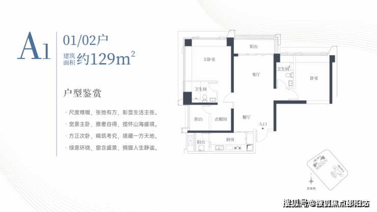 1栋一单元A1、A2户型:面积约为129㎡