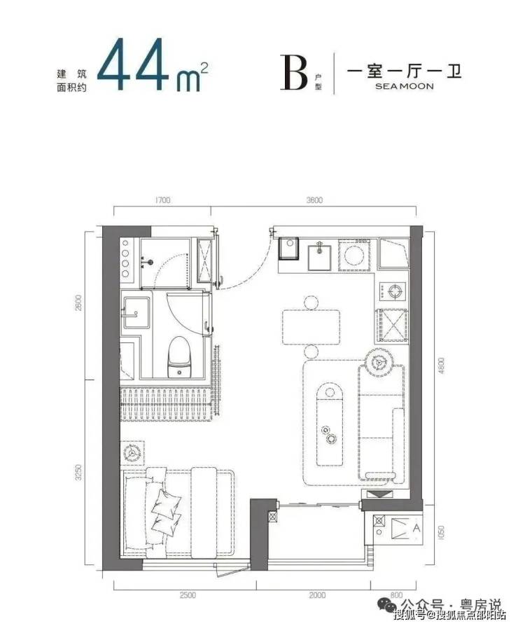 44㎡左右的一房一厅B户型 备案总价约:314-399万
