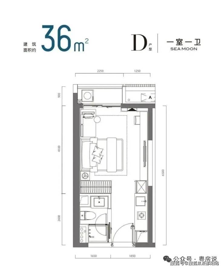 36㎡左右的一房D户型 备案总价约:232-277万