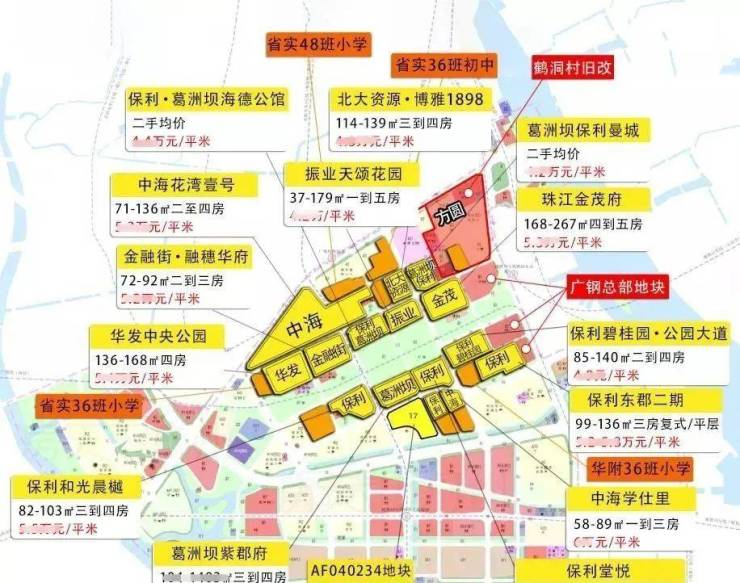 单从开发商的行动来看,广钢新城的发展前景是很被看好的,吸引了金茂、保利、中海、葛洲坝、华为等一众品牌开发商争相涌入拿地建设,而其位置北临白鹅潭商圈,东与广纸新城望江相隔,是近几年广州全力打造的高端住宅区,也是购房者关注的热门板块。