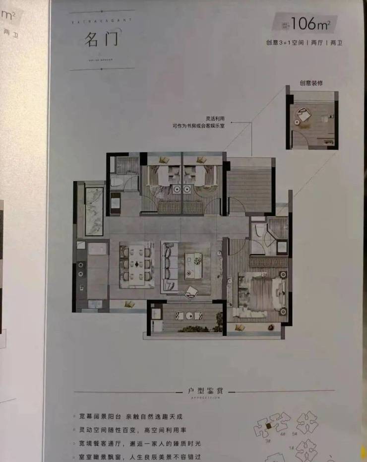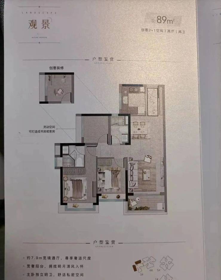 3栋面积有89㎡的三房两卫,以及106㎡的四房两卫,其中106㎡的横厅设计还是首次亮相!