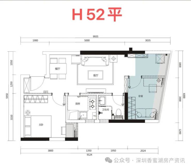 在售户型:约52-75㎡2-3房,位于B座45-46层高楼层,全屋高标精装配置齐全