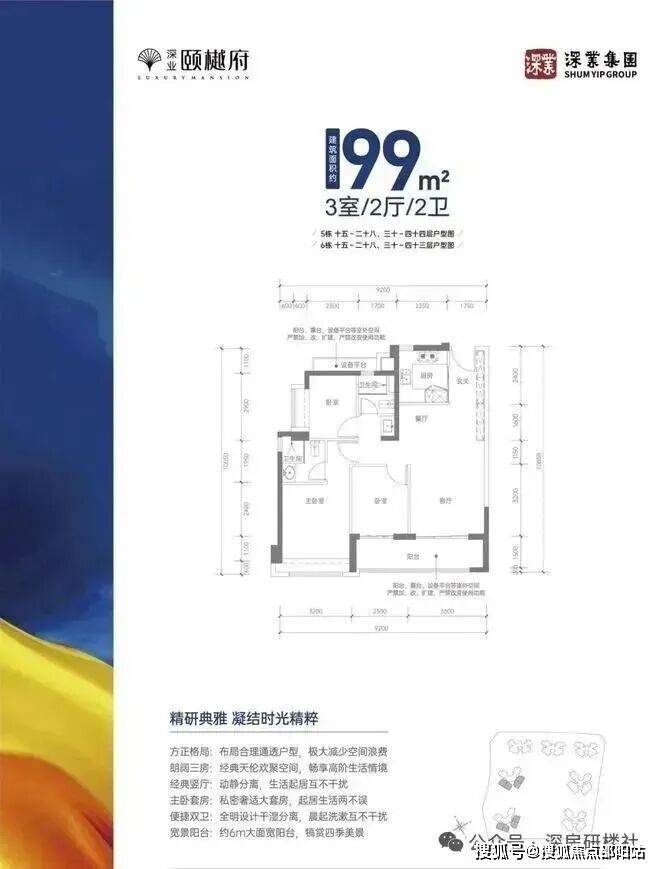 建面约99㎡三房两厅两卫,全南朝向·视野开阔·宽景阳台·目送教育