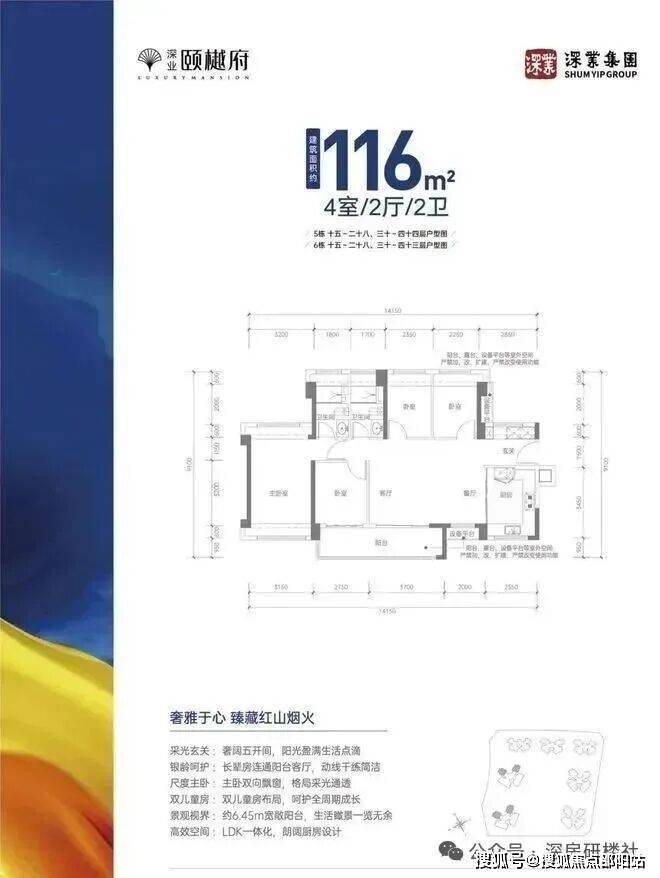 2. 园林与户型设计:2.3万㎡中央园林实现“出则繁华,入则静谧”,户型方正实用,99㎡三房得房率超90%,116㎡四房横厅设计兼顾社交与私密。