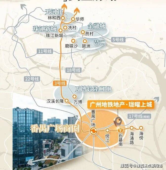 距离石基南站约500米,2站番禺广场;通过3号线无需换乘直达珠江新城,无缝对接18/22号线,实现3站万博CBD,4站广州南、琶洲CBD,5站珠江新城,半小时连接市中心,一小时畅行湾区。