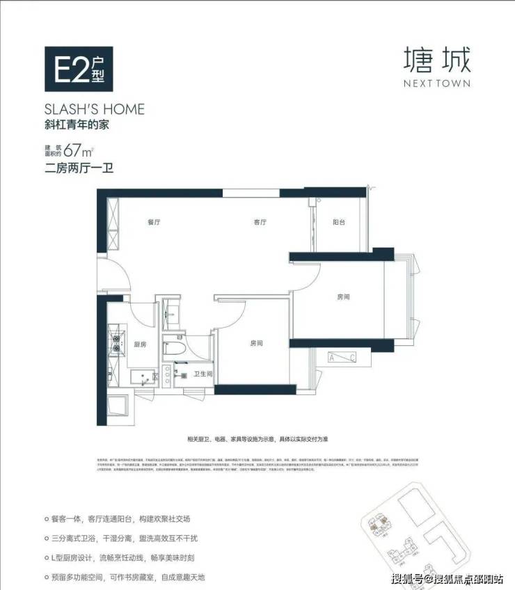 E2户型67㎡二房两厅一卫