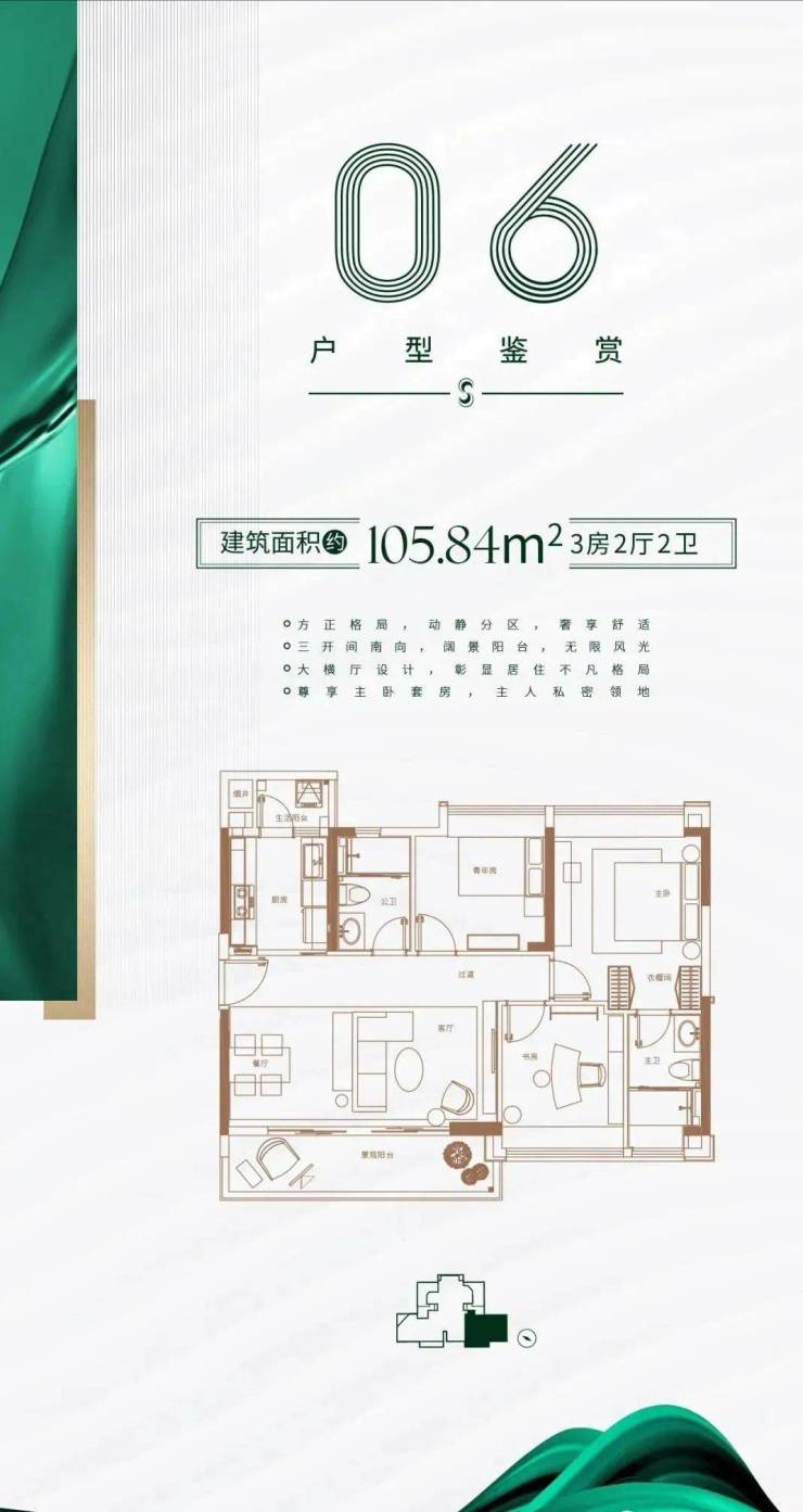 超低梯户比,6米宽景观大阳台,尽享无遮挡园景。