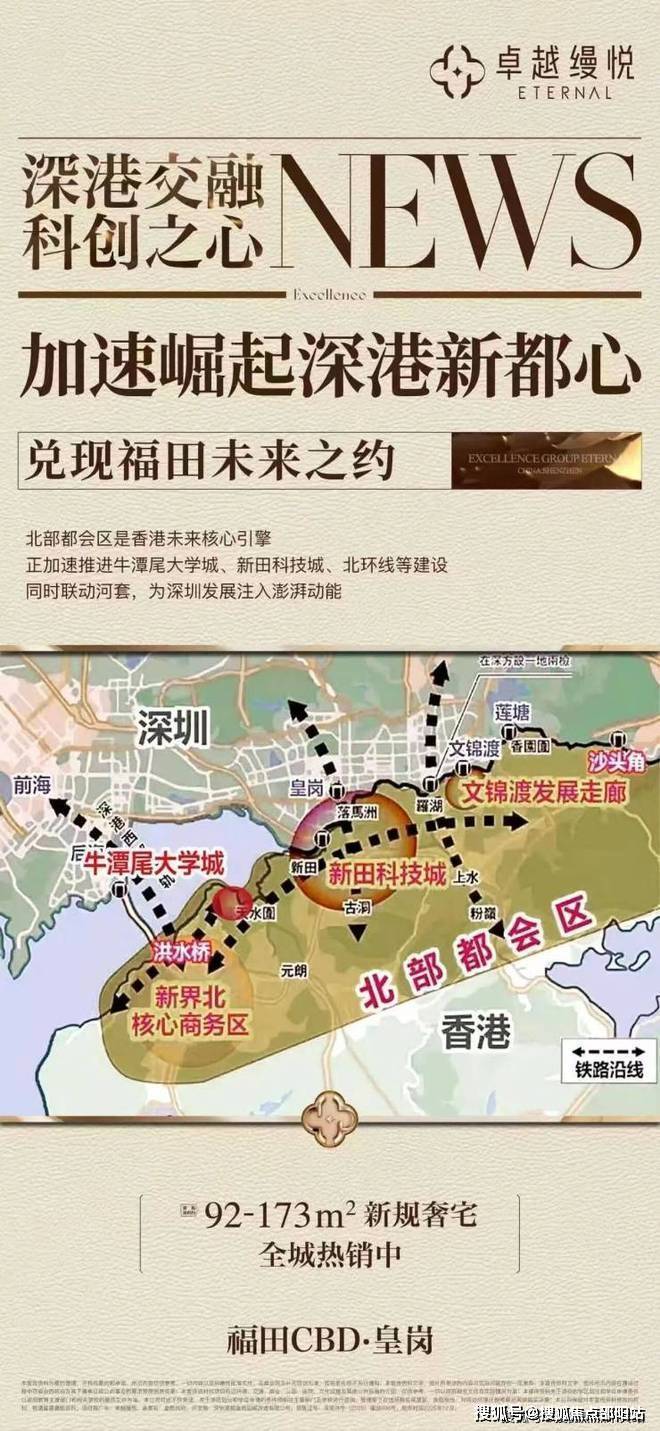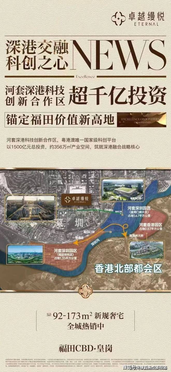 卓越缦悦,作为皇岗村旧改首期项目,位于深圳福田区福民路与皇岗二街交汇处西北角,占据深圳中轴线南北双核交汇处,北承福田CBD金融中心,南接河套深港科技创新合作区(深圳硅谷2.0),坐享深港融合带来的产业、人才和政策红利。项目位于皇岗村旧改一期,该旧改总建面高达201万㎡,分五期开发,其中一、三期南区以居住为主,二、三期北区以商业、办公及配套为主 。作为福田区"会展南广场"规划的重要组成部分,项目将深圳中轴线延伸至皇岗,成为连接行政文化中心与河套科创区的关键节点。