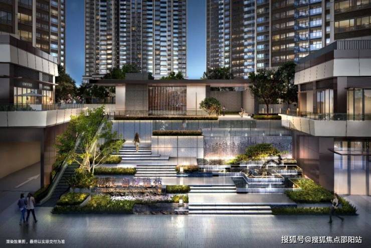 ✅【高抬水韵主入口】主入口叠水流瀑搭配罗汉松,高抬轩昂门庭彰显尊荣威仪,于步步高升中体验归家的仪式感。