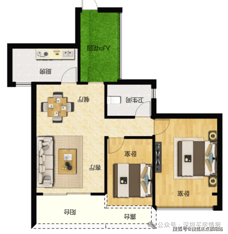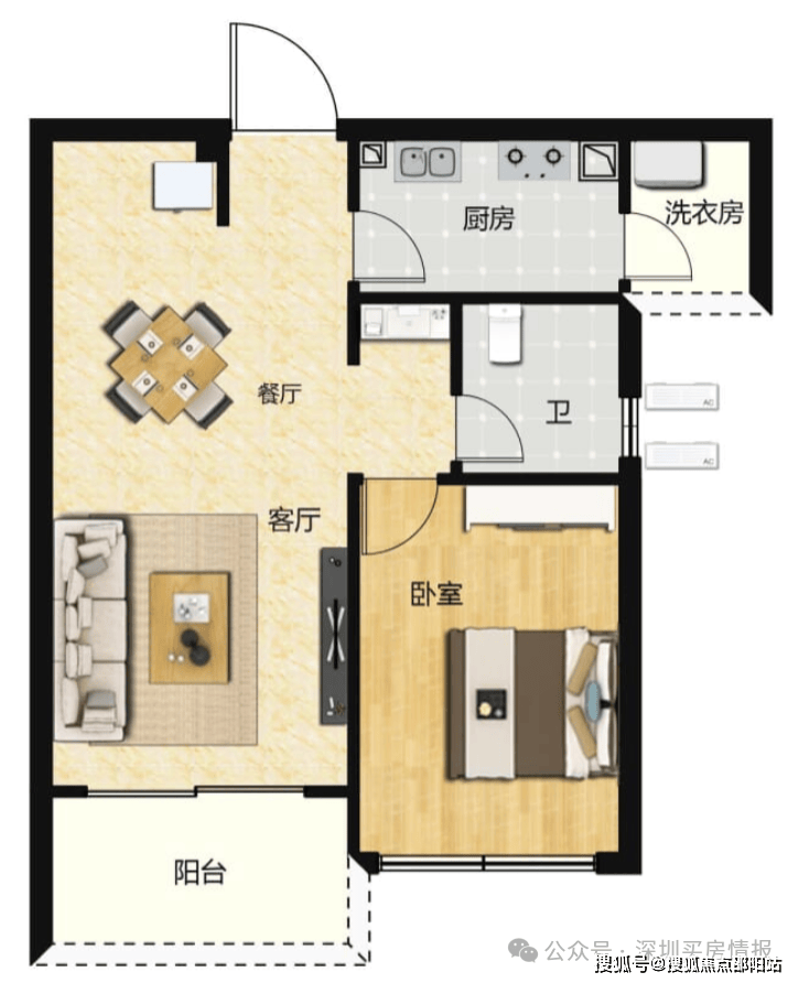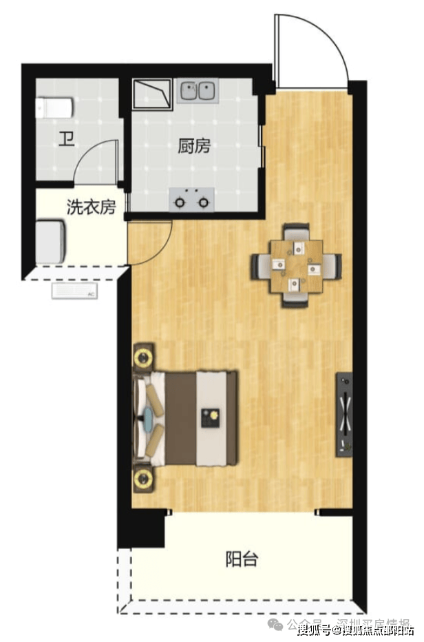 50㎡1房,带生活阳台,传统一房一厅布局。