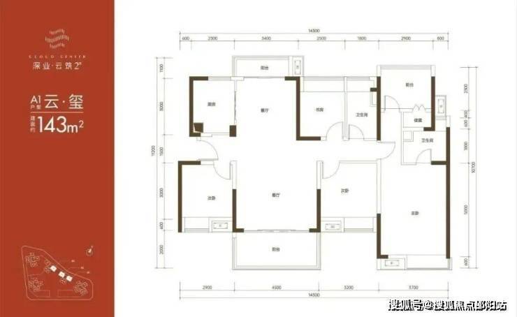 143㎡的5房2厅2卫,折后总价539-589万/套,单价3.76-4.11万/㎡。
