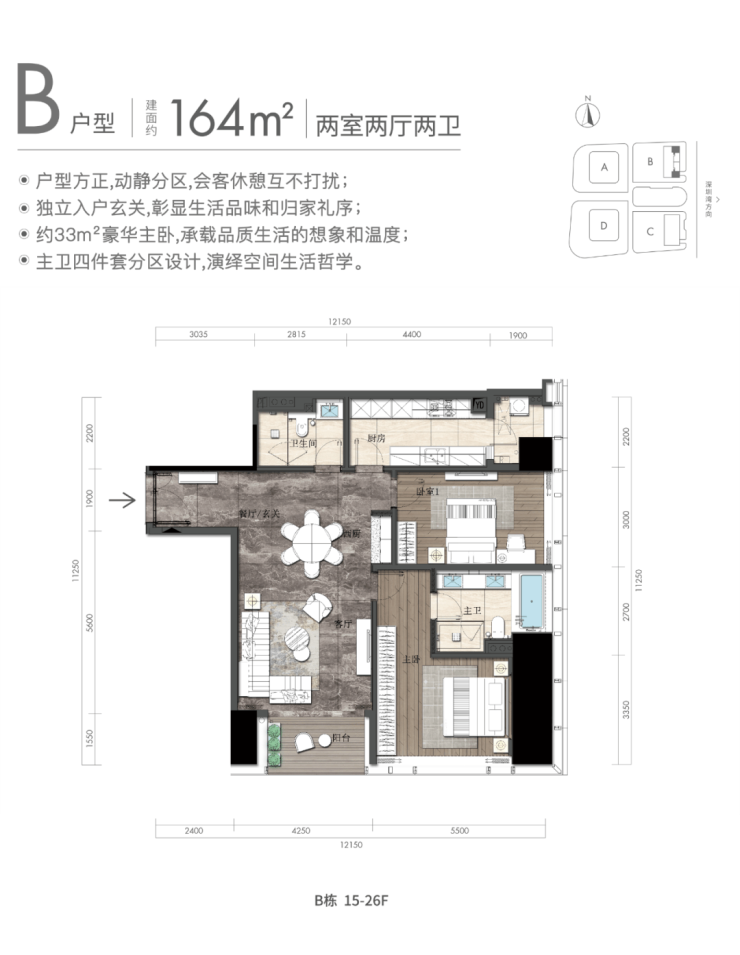 恒裕深圳湾的商务公寓,其户型设计也遵循了深圳豪宅产品的空间布局。