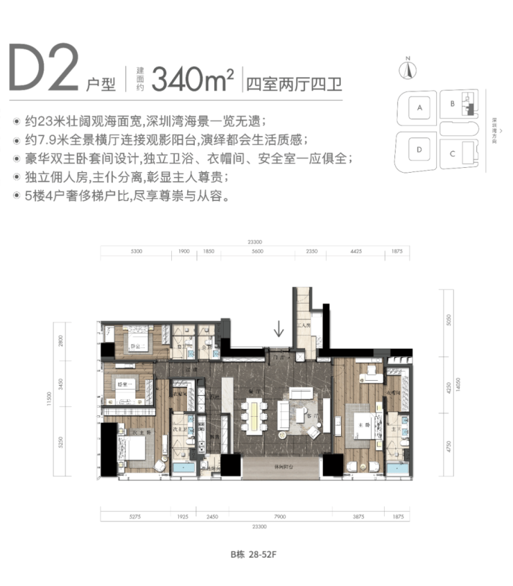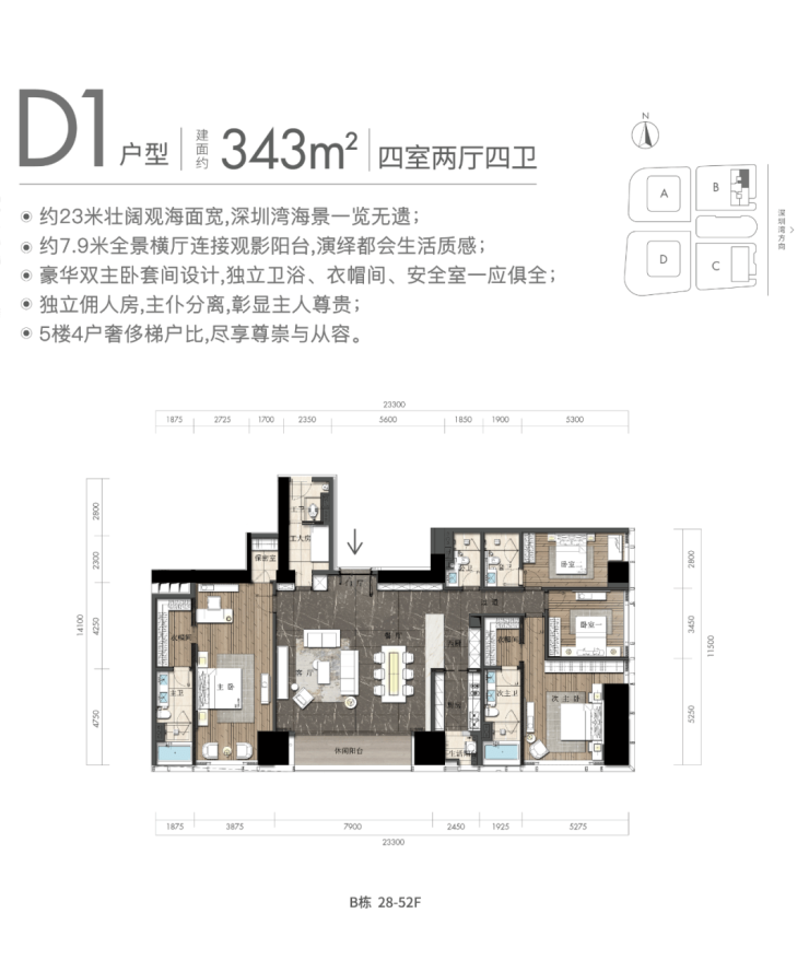 4房户型为340、343平;