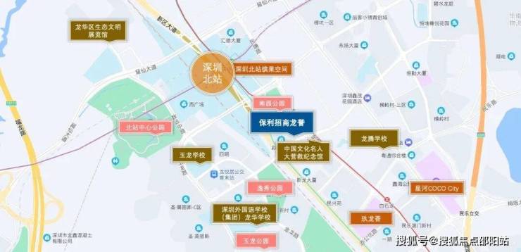 保利招商龙誉花园位于龙华区新区大道彩旺大厦东北侧及深圳北站附近,项目紧靠约6.1k㎡北站商务中心,总部商务新坐标。北站商务中心规划约60栋商务办公楼、约5-7个城市商业综合体、约6-9个四星级及以上酒店,计划引进20-30家大型总部企业及上市公司,还有6至9家四星级以上酒店,集聚25万商务精英,将打造城市会客厅。