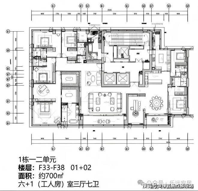 500-700㎡超大户型:700㎡户型位于1栋一、二单元高区33-38层,由01+02户型组成。户型宽敞奢华,可尽享海景与城市景观,为高端客户提供极致居住体验。